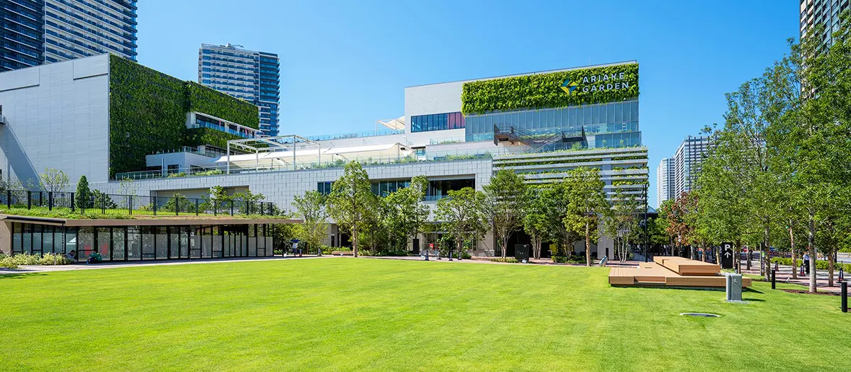 Este espacio abrió sus puertas en la bahía de Tokio en 2020, cerca del Aeropuerto de Haneda. Puedes acceder fácilmente al Ariake Garden desde el aeropuerto o el centro de Tokio. Se encuentra cerca del puente Rainbow Bridge y del mercado exterior de Tsukiji.