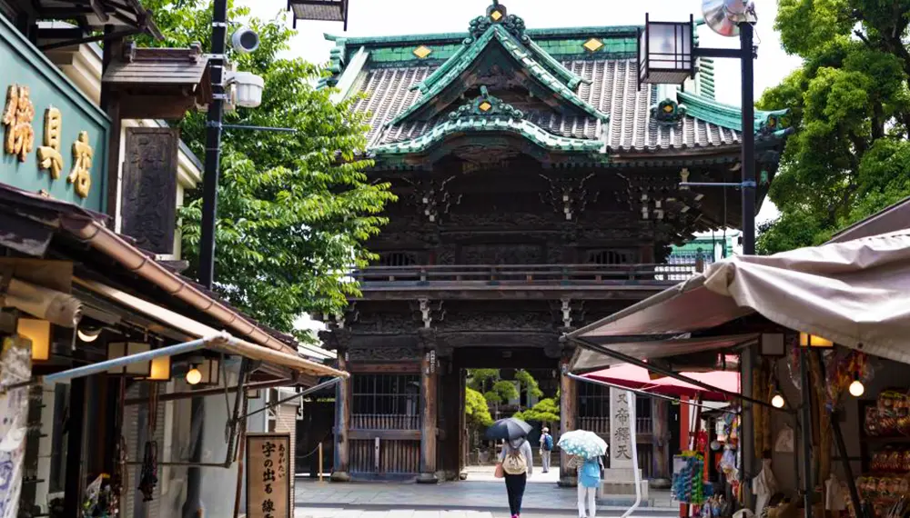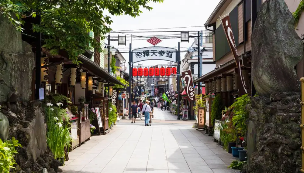 Indemne de los bombardeos aéreos de la segunda guerra mundial, la vía de 200 metros de longitud que lleva desde la estación Keisei Shibamata al templo Shibamata Taishakuten es uno de los mejores lugares de la ciudad para conocer cómo era Tokio antes de la era moderna. La calle mantiene una atmósfera agradablemente nostálgica, con tiendas donde se venden especialidades de Asakusa, arquitectura en madera y tiendas a la antigua apretujadas unas con otras.