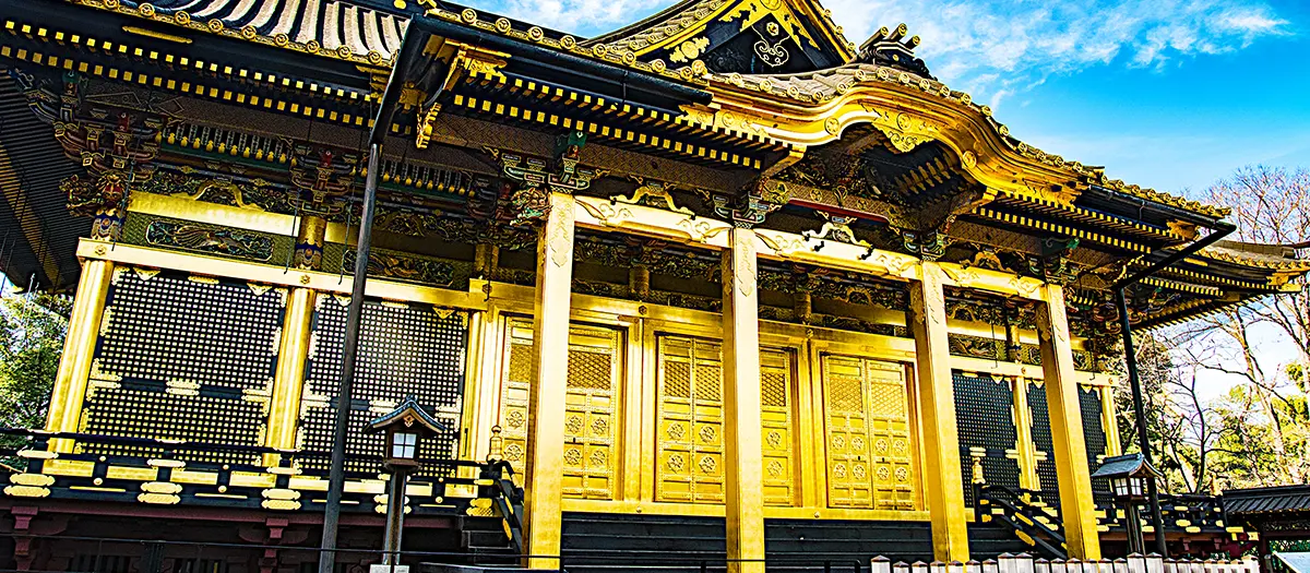 Mientras camina hacia el Santuario de Ueno Toshogu, en el Parque Ueno, su fachada dorada le dará la bienvenida. Este magnífico edificio se declaró Patrimonio Cultural de Japón por su resistencia frente a las devastadoras guerras y terremotos que sufrió desde su construcción, en 1627. Gracias a una importante rehabilitación en 1651, el santuario conserva rasgos distintivos del periodo Edo (1603-1867). Preste atención a los adornos de las hojas de oro y a las intrincadas tallas.