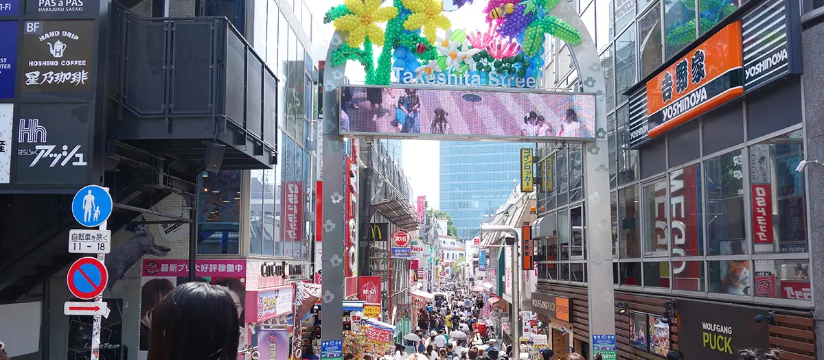 Los 350 metros de la calle Takeshita-dori, que empieza en la calle justo enfrente de la estación JR Harajuku, es ideal para todos aquellos que se interesan por la moda y las tendencias en Tokio. Se sabe que Lady Gaga viene a comprar aquí –y es que a pesar de tener reputación de adorablemente kawaii, también cuenta con varias boutiques especializadas en la atrevida moda grunge y gótica.