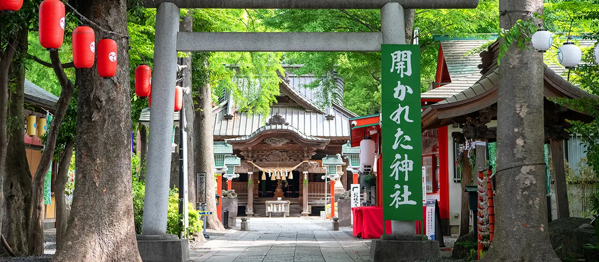 Si bien no se conocen los orígenes exactos del santuario, su existencia se remonta, según los registros, a finales del siglo XIII. En 1670 fue reubicado a su emplazamiento actual, en la zona oeste de Tokio, a unos 30 minutos en transporte público desde la estación de Seibu-Shinjuku.