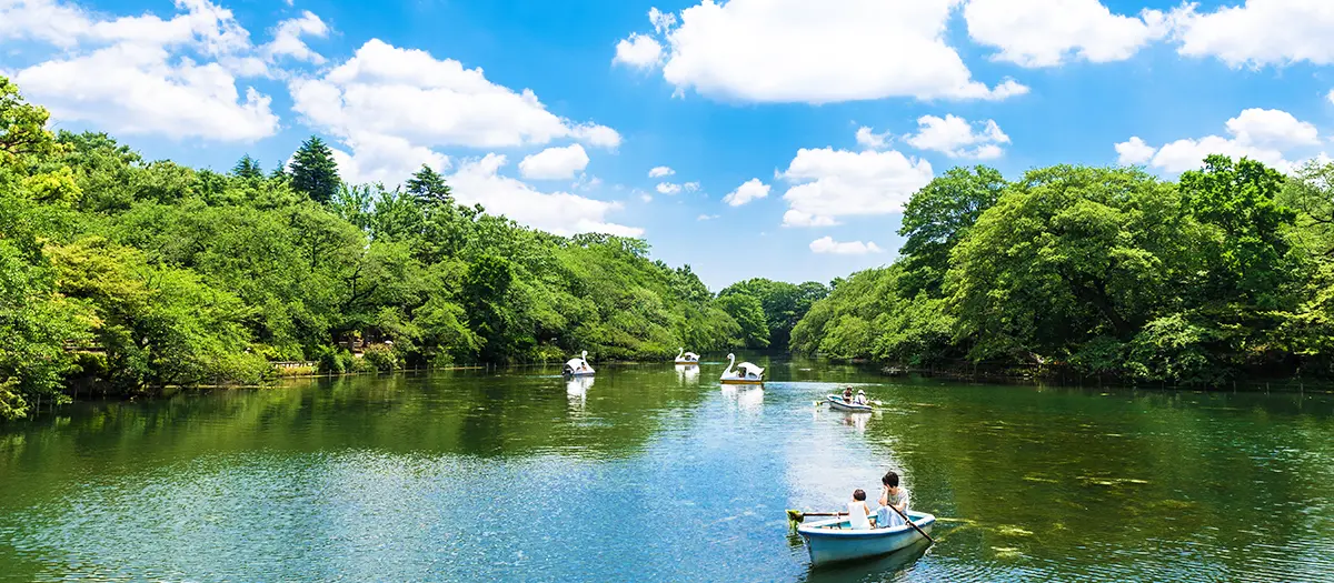 El parque Inokashira es muy apreciado entre los lugareños por proporcionar un frondoso espacio verde con muchas instalaciones de ocio, un santuario y un bucólico estanque. En el estanque de Inokashira, que se encuentra en el centro del parque, podrás alquilar botes de remos. En primavera, la orilla queda rodeada de cerezos en flor, y durante la breve temporada de pétalos blanco-rosados es un excelente momento para hacer un picnic bajo las flores.