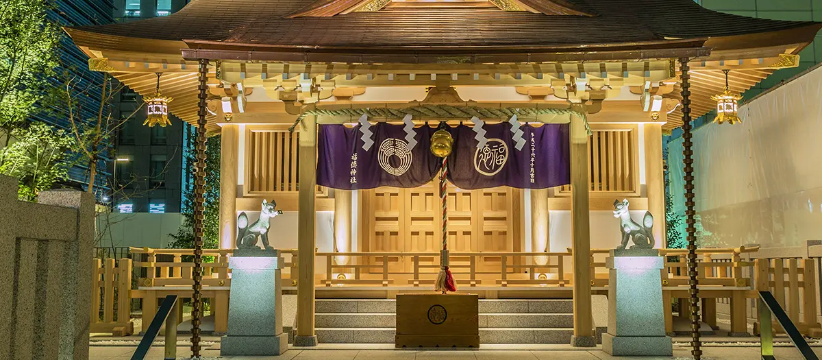 El santuario está situado en el distrito financiero de Nihombashi y contrasta enormemente con el ambiente comercial de su entorno. Era uno de los pocos lugares autorizados a organizar loterías en el periodo Edo (1603-1867) y, hasta la fecha, son muchos los que vienen a rezar para tener buena suerte en las loterías takarakuji.