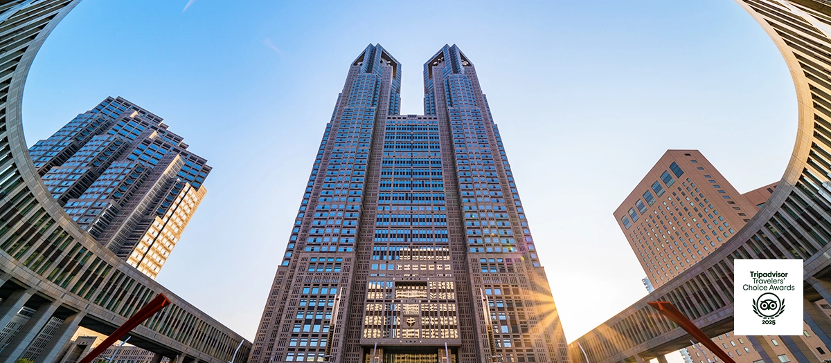 Las plantas más altas del edificio núm. 1 del Gobierno Metropolitano de Tokio, están separadas en dos torres, la torre norte y la torre sur. Ambas tienen un observatorio en la planta 45. Es un buen lugar para contemplar la vista nocturna al que puede accederse hasta las 21:30 (cierra a las 22:00). Cuenta además con un café.