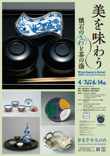 “Kaiseki” originally referred to the cuisine served to guests at a formal tea gathering (chaji), before the serving of thick matcha tea. This exhibition brings together a selection of kaiseki utensils from the Seikado collection, including lacquerware, mukozuke dishes, and bowls.