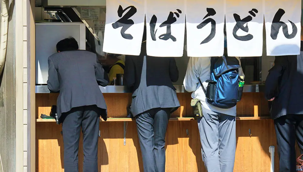 Les restaurants de soba et d’udon à manger debout proposent un petit-déjeuner rapide aux gens pressés. On les trouve souvent à l’intérieur ou devant les grandes gares, et ils ouvrent tôt le matin. Joignez-vous aux banlieusards sur le chemin du travail pour un petit-déjeuner savoureux, rapide et facile. Le choix des garnitures est vaste : viande, légumes, fritures, etc. Il existe également des restaurants qui proposent un choix encore plus vaste avec des plats de curry, de katsudon ou des ramen.