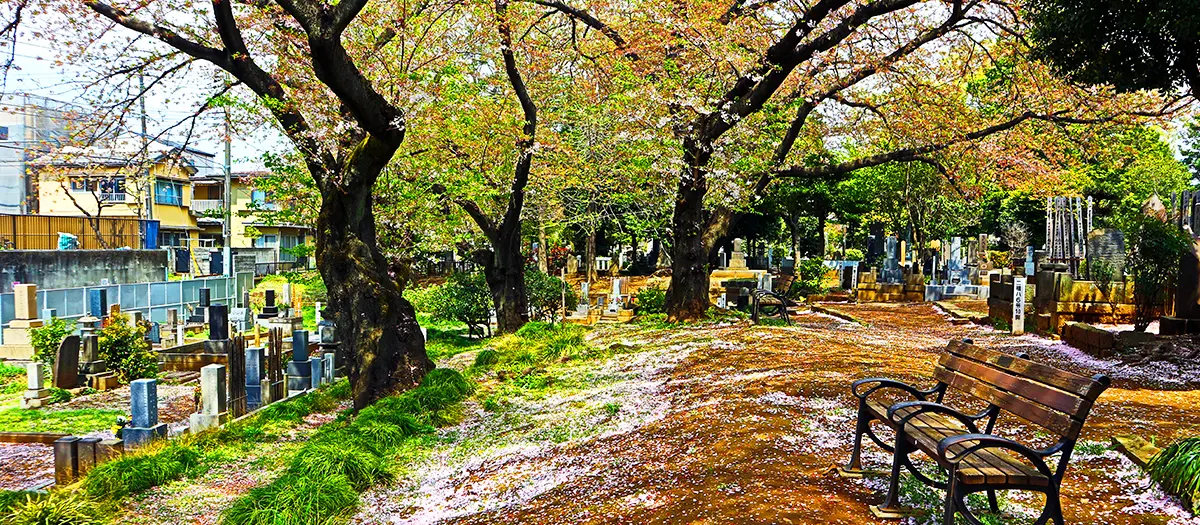 Des tombes célèbres, dont celles des membres du clan Mito Tokugawa et du sculpteur Takamura Koun se trouvent dans ce cimetière. Au printemps, admirez les nombreux cerisiers en fleur en vous promenant dans les allées bordées d'arbres.