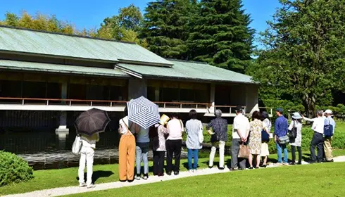 Louez un audioguide pour en savoir plus sur le palais, comme des anecdotes sur les pièces richement décorées du bâtiment principal. Les audioguides sont disponibles en six langues : japonais, anglais, français, espagnol, mandarin et coréen. Des visites guidées de l'annexe de style japonais sont disponibles dans l'après-midi. Aucune réservation n’est requise pour visiter le bâtiment principal, mais la visite de l’annexe de style japonais nécessite une réservation à l’avance.