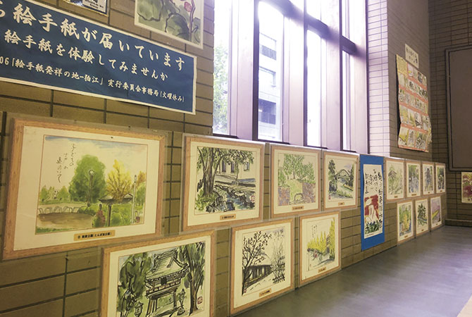 Cette plaque d’égout est décorée d’une « carte postale à dessin ». Le concept d'une « carte postale à dessin » consiste à « envoyer une lettre avec un dessin ». Le premier cours de carte postale à dessin a été tenu dans la ville de Komae et depuis, la ville tient plusieurs affaires en tant que « lieu de naissance de la carte postale à dessin ». Vous trouverez plusieurs œuvres en relation avec ces cartes postales dans la ville.