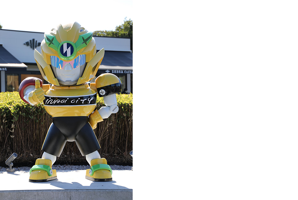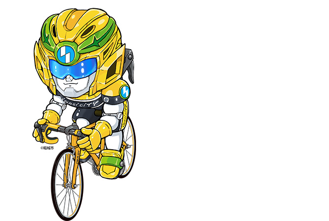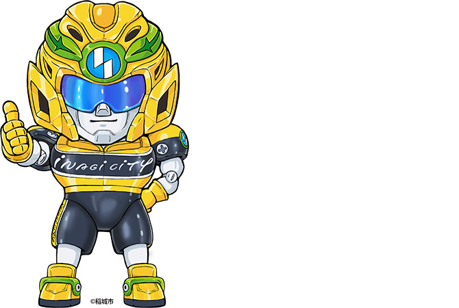 Le « Soldat Onekan Inagi Pédalion », personnage original de la ville d’Inagi dessiné par l’animateur de mecha Kunio Ōkawara.