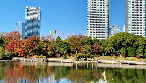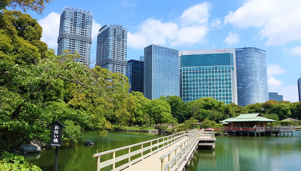 Entrez dans ce magnifique jardin de l'époque d'Edo (1603-1867) avec un pavillon de thé construit comme s’il flottait sur l'eau et découvrez un monde séparé des hauts bâtiments de la ville. Le jardin est situé au bord de la baie de Tokyo, et est le seul jardin d’Edo à incorporer de l'eau de mer dans son bassin.