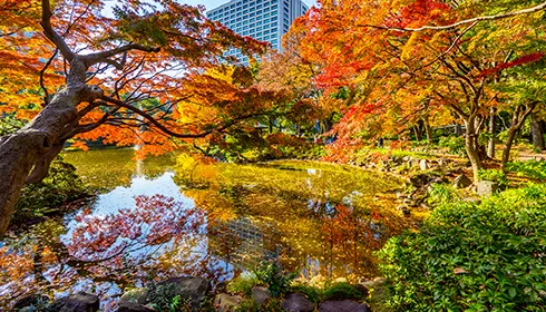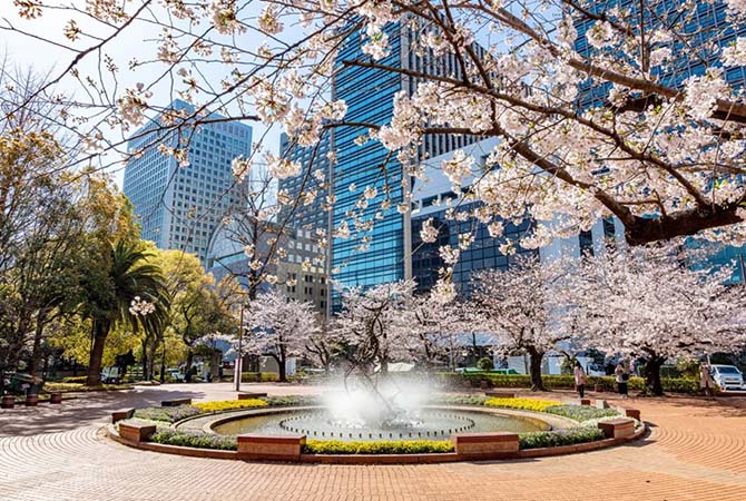 Le parc de Hibiya, avec ses arbres bien entretenus, ses pelouses et ses parterres de fleurs, est une oasis de calme au cœur de la ville. Ce parc est situé à seulement quelques pas du Palais impérial et de Ginza, si bien qu'il est possible de combiner sa visite avec d'autres attractions à proximité.