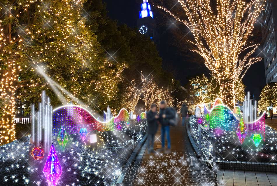 En hiver, un jeu de lumières basé sur un thème différent chaque année transporte les visiteurs dans un univers extraordinaire.