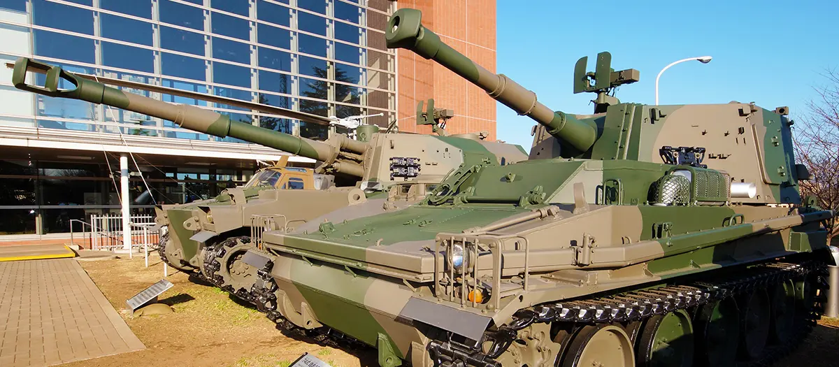Le centre public d'informations de la JGSDF (Force terrestre d'autodéfense japonaise) abrite des hélicoptères, des tanks, des missiles et autres équipements militaires.