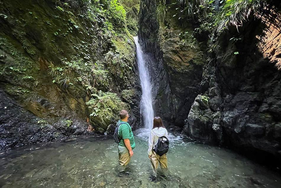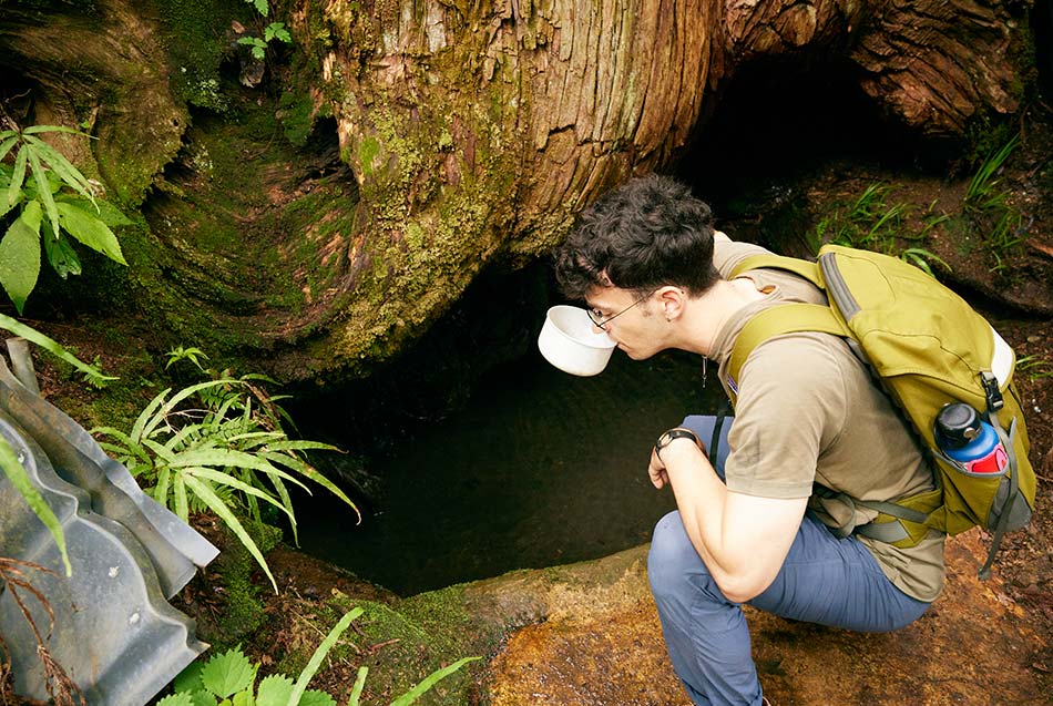 Les guides nous parlent d’un monde très éloigné de la ville animée située à moins de 60 kilomètres. L’un d’entre eux a grandi dans le village et a vécu de la fabrication du charbon de bois tout en se nourrissant des produits de la terre. En tête de peloton, à plus de 80 ans, il nous conte diverses anecdotes de sa jeunesse au village. Lorsque nous nous approchons d’un tas de pierres soigneusement empilées - un four, nous dit-on - recouvert de mousse d’un vert éclatant, il nous raconte comment il l’a construit dans les bois pour fabriquer du charbon de bois lorsqu’il était plus jeune. La terre est riche. L’un de ses bienfaits est un arbre massif. De l’eau s’écoule à travers la motte de ses racines, formant un réservoir en dessous, et est délicieuse.