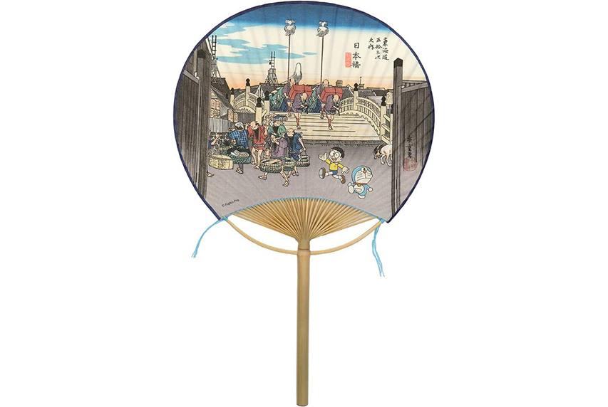 Les uchiwa-e, des éventails ornés de dessins d’ukiyo-e (estampes gravées sur bois), sont très populaires depuis l’époque d’Edo. Ils présentent les œuvres de divers artistes, dont Toyokuni, Kuniyoshi ou encore Hiroshige. La gamme d’éventails Doraemon x Ibasen propose des dessins des personnages du célèbre dessin animé japonais « Doraemon » réalisés dans le style des estampes gravées sur bois traditionnelles de Hiroshige.