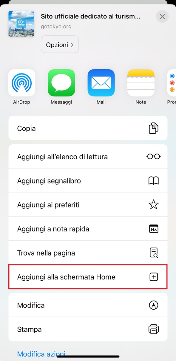 Tocca l'icona Aggiungi a Home (riquadro rosso nell'immagine).