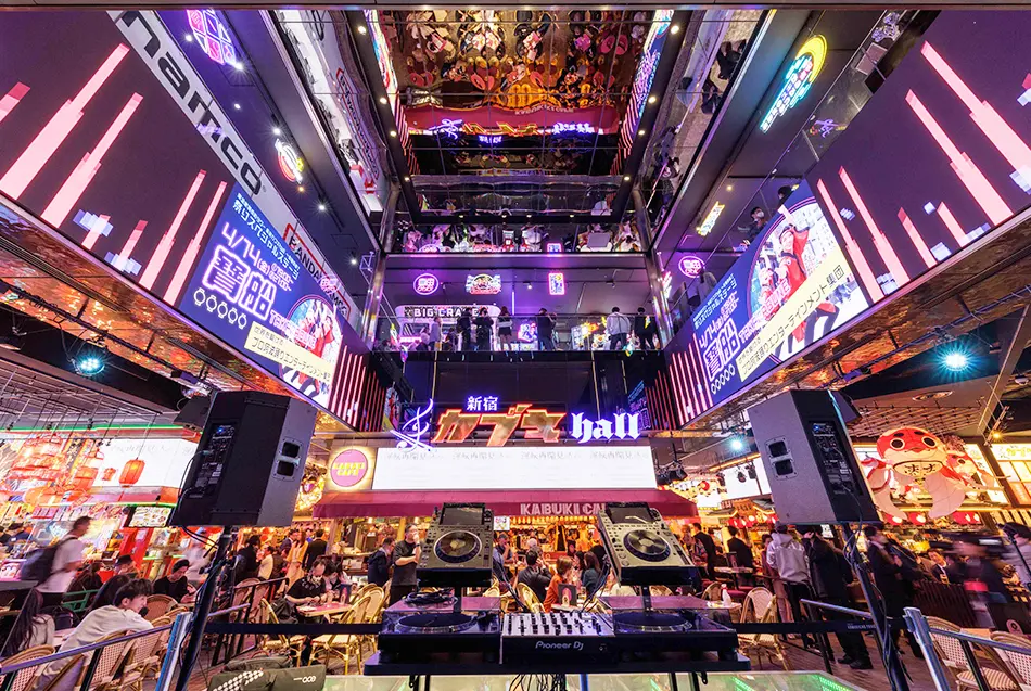 La Kabukicho Tower a Shinjuku ha aperto nell’aprile 2023 ed è sede di Shinjuku Kabuki Hall – Kabuki Yokocho, un centro di intrattenimento in stile retrò illuminato da luci al neon. Comprendente una food hall di nuova generazione con ben 10 ristoranti, Shinjuku Kabuki Hall – Kabuki Yokocho raccoglie piatti tradizionali provenienti da tutto il Giappone. Per far conoscere al pubblico giovanile l’originale tradizione delle sakaba (bar, pub, izakaya ecc.) giapponesi, una vasta gamma di spettacoli che vanno da serate DJ a festival e a concerti di gruppi idol tengono allegra la clientela durante il pasto. La domenica si può anche assistere a spettacoli tradizionali, come le dimostrazioni con katana “tate”, che rendono ancora più autentica l’atmosfera.