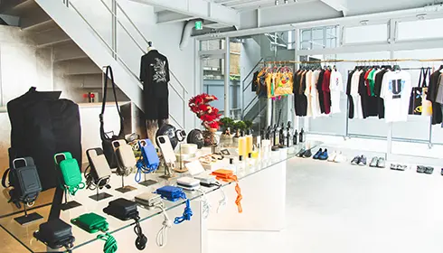 Dentro il negozio, abiti, scarpe e accessori di marche come Issey Miyale e Comme de Garçons riempiono gli scaffali sopra pannelli color oro simili a paraventi. Articoli come quelli seguenti, realizzati in collaborazione con artisti e designer, sono tra i più accattivanti.