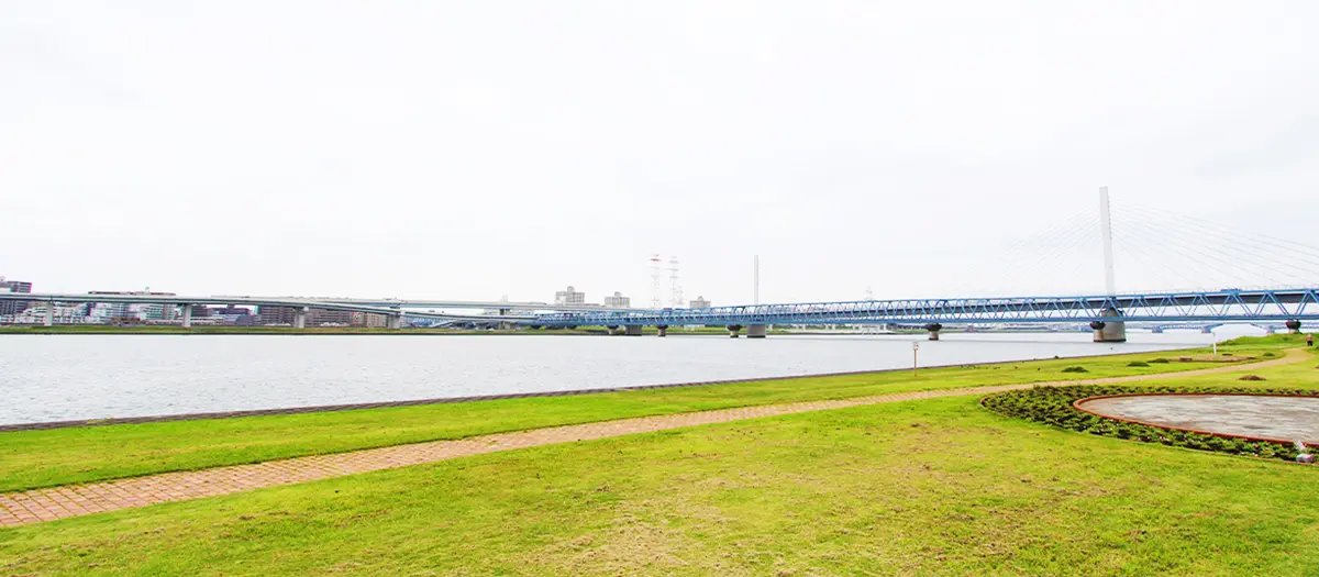 Sulla riva ovest del fiume Arakawa, il parco Sunamachi Mizube è perfetto per una passeggiata.