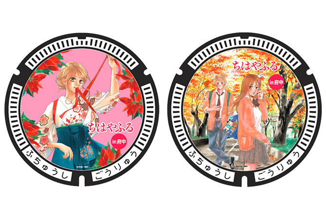 La città di Fuchu si ripropone di attirare visitatori e incoraggiarli a girare per le sue strade, promuovendo così il turismo, mediante l’installazione di tombini ispirati a personaggi di manga e altri personaggi legati a questa città. Come parte di questa iniziativa sono stati realizzati un totale di 8 tombini di 7 tipi diversi ispirati ai personaggi del manga "Chihayafuru-Il gioco di Chihaya" che sono stati collocati in parti della città direttamente collegate al manga. Potrete trovare informazioni più dettagliate, come le località dove sono stati istallati i tombini, sul sito ufficiale della città di Fuchu.