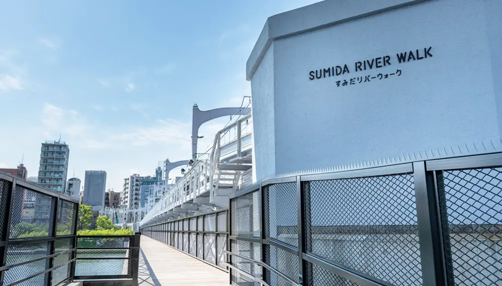 Il fiume Sumidagawa ha, sulla sponda ovest, la stazione Asakusa e luoghi molto noti come il tempio Sensoji e Nakamise-dori, la via piena di negozietti; sulla sponda est, ci sono TOKYO SKYTREE TOWN, nata intorno alla TOKYO SKYTREE, e TOKYO Solamachi, con il Sumida Aquarium e i suoi più di 300 negozi. SUMIDA RIVER WALK è un percorso che si trova proprio lungo il fiume e, percorrendolo, si raggiunge la zona di TOKYO SKYTREE TOWN da Asakusa, una delle mete turistiche più visitate a Tokyo. Sotto i binari della linea TOBU SKYTREE, che collega le stazioni Asakusa e TOKYO SKYTREE, c’è TOKYO mizumachi, il nuovo centro commerciale inaugurato a giugno 2020.