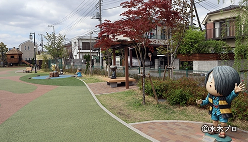 Attraversata la strada principale (Tsurukawa-kaido) alla fine del passaggio pedonale, troverete Piazza Kitaro, un parco dove potrete immergervi nel mondo dei manga di Mizuki. Tra le attrazioni,ricordiamo la parete da arrampicata, l panchina "Ittan Momen" e lo scivolo della casa di Kitaro.