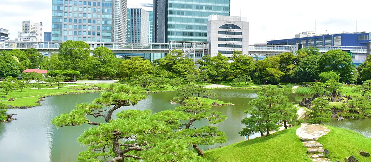 Questo piccolo giardino non richiede molto tempo per essere visto tutto, ma rende perfettamente l'idea di come erano i giardini del passato ed è perfetto per una pausa lontano dal caos cittadino. Il laghetto costeggiato da un sentiero segnato da rocce rappresenta l'oceano con piccole isole e spiaggia laterale. Per chi ha tempo a disposizione, a 15 minuti a piedi ci sono i famosi giardini Hamarikyu, mentre verso est c'è il molo Takeshiba da cui partono bus sull'acqua e traghetti per gite con cena sulla baia.