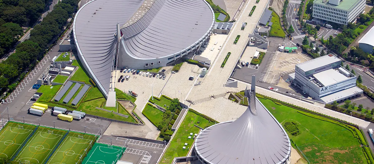 Con il “1° Gymnasium” costruito utilizzando una struttura a tetto sospeso ad alta tensione e il “2° ginnasio” a forma di mortaio, coperto da un bel soffitto conico, questo stadio ha ricevuto il plauso internazionale.
