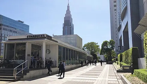 La Shinjuku Southern Terrace si estende dall’uscita sud della stazione Shinjuku in direzione Yoyogi.Con una vasta gamma di locali, tra cui caffè all'aperto e ristoranti, questa terrazza è un’oasi urbana dove rilassarsi con una tazza di caffè in mezzo al verde fogliame.