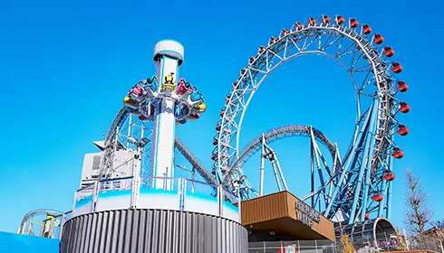 Con ingresso libero alle strutture, le attrazioni del luna park di Tokyo Dome City garantiscono il divertimento a tutti. Per cominciare, le strabilianti montagne russe Thunder Dolphin che si snodano tra varie strutture tra cui la ruota panoramica Big-O "centerless". Quest'ultima è una delle principali attrazioni: 15 minuti di relax e panorami, magari accompagnati dalla musica del karaoke in ogni cabina.