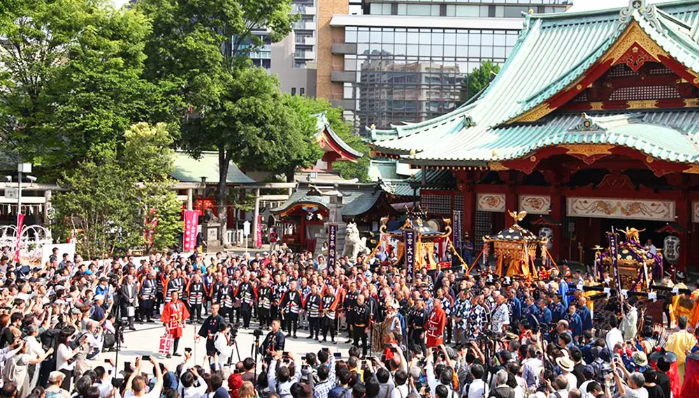 La festa Kanda-matsuri del santuario Kanda Myojin è considerata una delle tre grandi feste tradizionali di Edo (così era un tempo chiamata Tokyo). Le sue origini risalgono all’8° secolo. Lo Honmatsuri, o festa principale, si tiene ogni due anni negli anni dispari. Una versione in scala ridotta si tiene negli anni pari. Lo Honmatsuri è caratterizzato da imponenti processioni di santuari portatili per le strade del centro di Tokyo.
