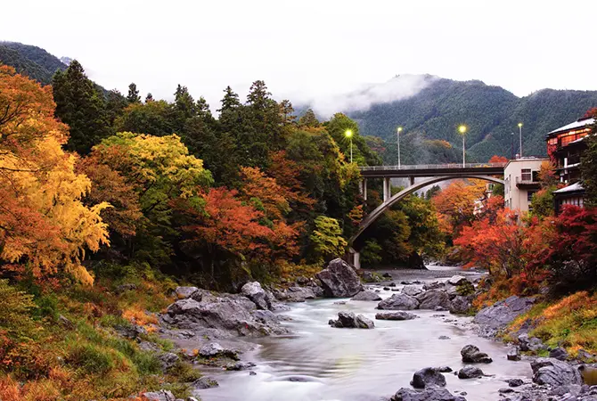 A due ore di treno dal centro di Tokyo, il “Lago Okutama”, con i suoi vasti paesaggi naturali e la possibilità di svolgere attività all’aperto sulle sue rive, è l'ideale per dimenticare il caos cittadino immergendosi nella natura e divertendosi all'aperto. Passeggiando lungo le valli e il fiume, tra piccoli villaggi e sentieri nei boschi, si ammira uno dei più bei paesaggi autunnali della regione.