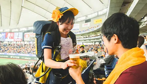 東京ドームを本拠地とする読売ジャイアンツの監督・選手によるプロデュース弁当や、東京の有名レストランのお弁当が多数揃うのも東京ドームならでは。中でも有名焼肉店「叙々苑」のお弁当は、古くからファンに親しまれている東京ドーム名物です。客席エリアを行き来する売り子から購入するビールを飲みながらの応援も、プロ野球観戦ならではのお楽しみ。ぜひお腹を空かせて出かけてください。