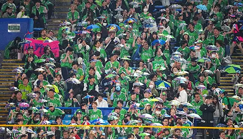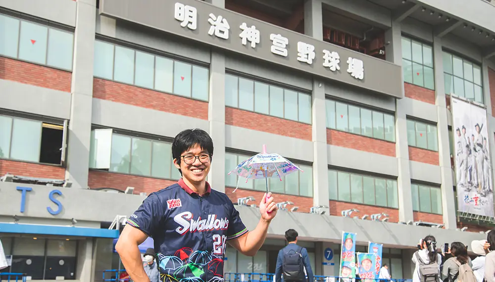 また、明治神宮野球場はユニークな「傘振り応援」でも知られています。明治神宮野球場を本拠地とする東京ヤクルトスワローズのホームゲームで行われるもので、7回裏開始前とヤクルトスワローズが得点した際に、盆踊りの定番曲として知られる「東京音頭」に合わせてファンが傘を一斉に振ります。この応援スタイルは、ファンのアイデアで1980年代に始まったといわれています。