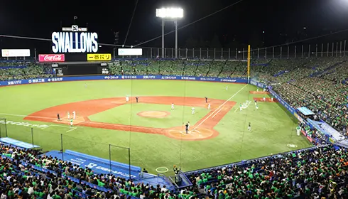 東京の夏の夜に暑さが和らいだ街の雰囲気を楽しむなら、明治神宮野球場(神宮球場)でのナイター観戦がぴったりです。明治神宮野球場は1926年に完成した、プロ野球を開催する東京で最も古い球場で、プロ野球だけでなく大学野球の聖地としても知られています。伝説の野球選手ベーブ・ルースがプレーした数少ないプロ野球球場の1つでもあります。