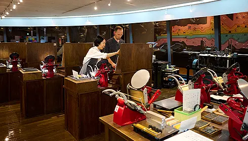 「印刷博物館」では、昔の作業場を再現した印刷工房で、約30分の活版印刷ワークショップに参加できます。活字を選んで組み、手動のレバー式印刷機を使って、季節の挨拶を一枚ずつ刷る体験です。刷り上がった印影には、現代のプリンターでは出せない凹凸やわずかな揺らぎがあり、手作業ならではの満足感が残ります。