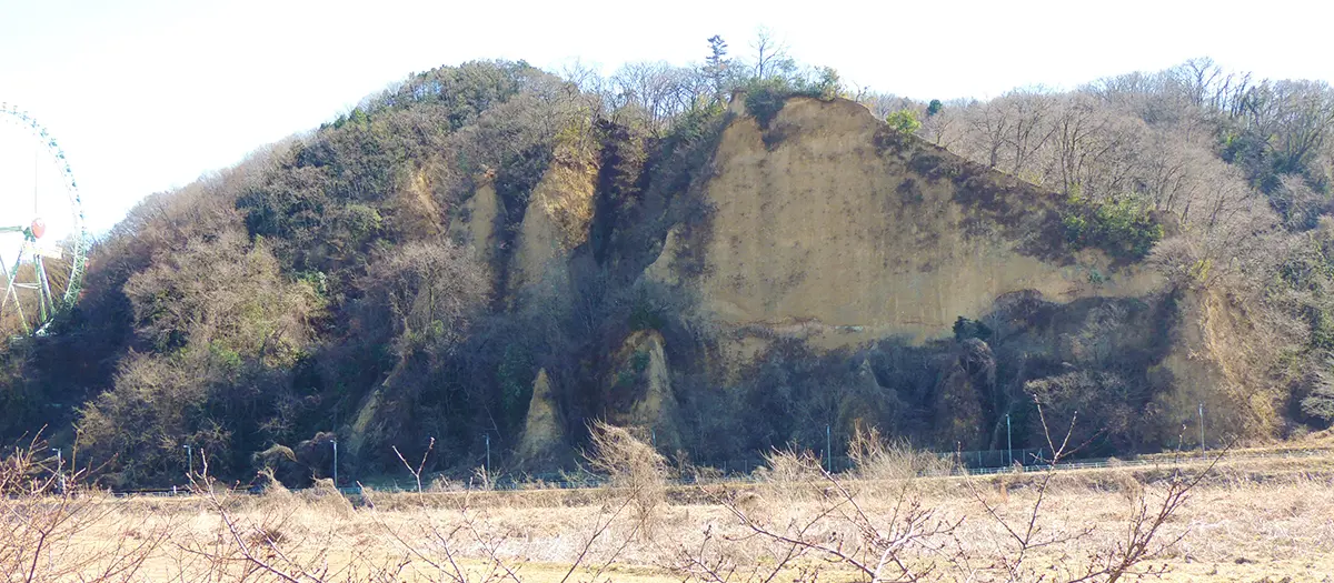 10メートルの高さがある六枚屏風岩は、屏風を立てたような姿からその名がつきました。土柱が成長・崩壊を繰り返した貴重な自然造形として、東京都天然記念物に指定されています。