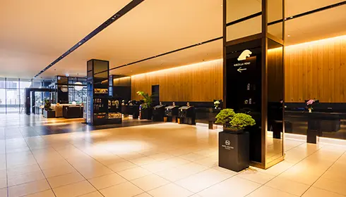 8階ロビーに隣接する『GRECERY LOUNGE』は、落ち着いたトーンのインテリアを基調とし、ゆったりとした時間を過ごすことができる空間。上質な雰囲気に包まれながら、ビジネスやプライベートなどさまざまなシーンで楽しむことができます。