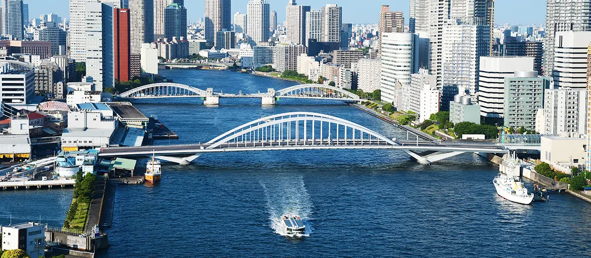 隅田川にかかっている27本の橋のうちの一つである勝鬨橋を渡って、日本の技術と知恵を間近に見てみましょう。1940年に、船が交通の主流であったころ、船を通すために可動部が上がる二葉跳開橋として建てられました。しかし1970年に、道路の交通を優先するために橋の開閉は永久に停止されました。