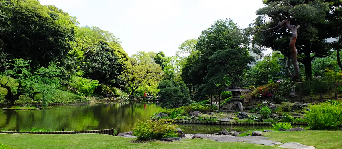 神田川沿いにある肥後細川庭園は、熊本藩主細川家下屋敷の庭園跡地を今に引き継いだ池泉回遊式の日本庭園です。目白台の台地(関口台地)の自然景観を活かして、変化に富んだ景観をつくり出しています。 庭園にある「松聲閣(しょうせいかく)」は、大正時代の建造物で、かつては細川家の学問所として使われていたようです。