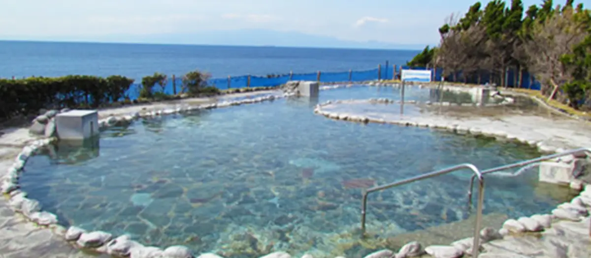 浜の湯で温泉に浸かりながら太平洋の眺めを楽しみましょう。この温泉は露天の混浴なので、利用者は水着着用が必要です。海に陽が沈む夕暮れの風景は必見です。