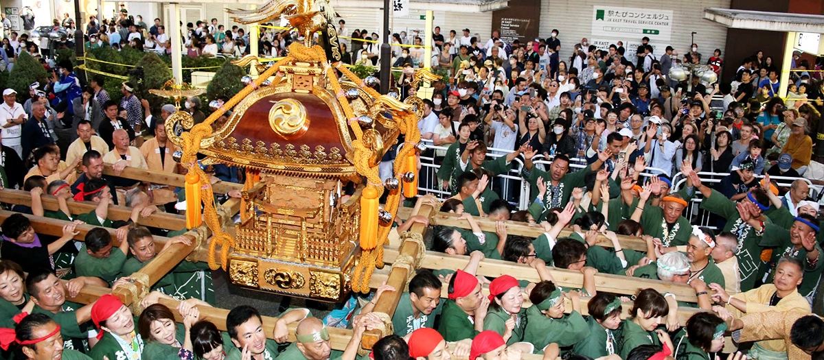 ふくろ祭りは、1968年に池袋駅西口の4つの商店会によって始められました。このイベントは今年で58回目を迎えます。大迫力の御輿パレードでは、16基の大御輿と数千人の担ぎ手が、池袋駅西口周辺でお祝いします。威勢のいい掛け声が街中に響き渡り、観客の心をお祭り気分にさせてくれます。