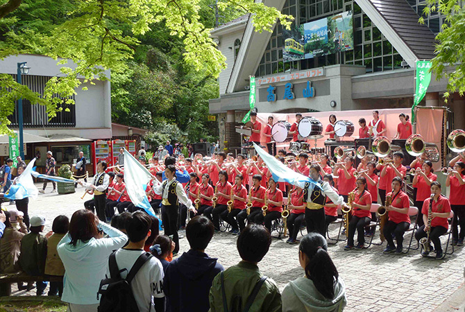 高尾山若葉まつりは、ミシュランの有名な旅行ガイドで最高評価の三つ星を獲得した高尾山の春の新緑を紹介するお祭りです。