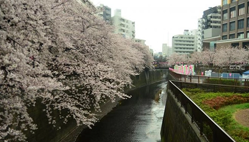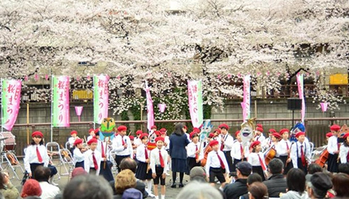 「中目黒桜まつり」は、中目黒駅前商店街の人々が中心となり、人々のつながりを深め地域の発展に役立つようなイベントを、と企画したのが始まりです。同時に、地元の目黒川の桜を楽しんでほしいという思いも込められています。目黒川の両岸から川を抱くように桜が咲く風景は実に見事です。