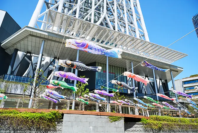 5月5日(月・祝)のこどもの日を記念して、東京スカイツリータウンでこいのぼりフェスティバルが開催されます。「ソラマチひろば」など東京スカイツリータウン内各所に合計約1,000匹のこいのぼりが掲揚され、空一面に泳ぐこいのぼりの群泳を楽しむことができます。週末にはさまざまなイベントやワークショップも開催。親子でぜひ楽しんでください。