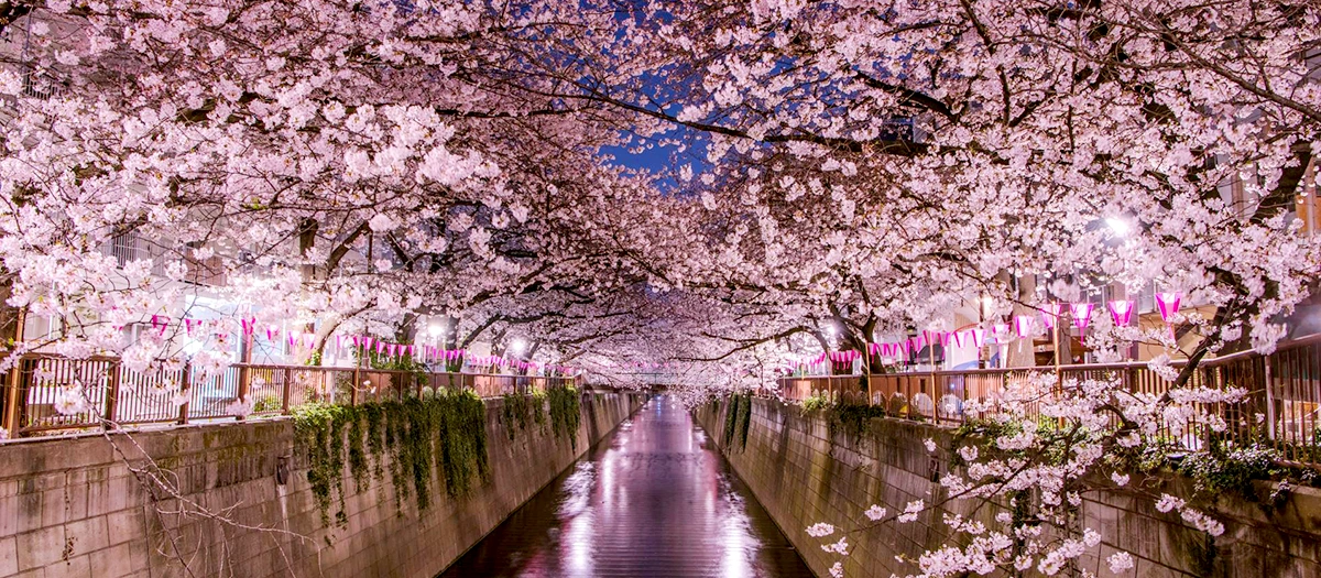 おしゃれな喫茶店やカフェが軒を連ね、流行に敏感でありながらも、のんびりした雰囲気の中目黒エリア。桜の開花時期には、普段は静かな川沿いが一転し、活気であふれます。