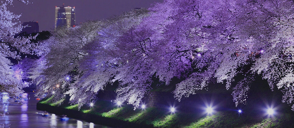 3月下旬から4月上旬に東京を訪れるなら、日本を象徴する桜の花を観賞するお花見を楽しみましょう。小さくて繊細で美しい桜の花が楽しめるのは昼間だけではありません。桜の季節には、多くの公園や庭園などで、日が沈むと桜の木をライトアップします。夜桜は、この世のものとは思えないほど美しい輝きを放ちます。