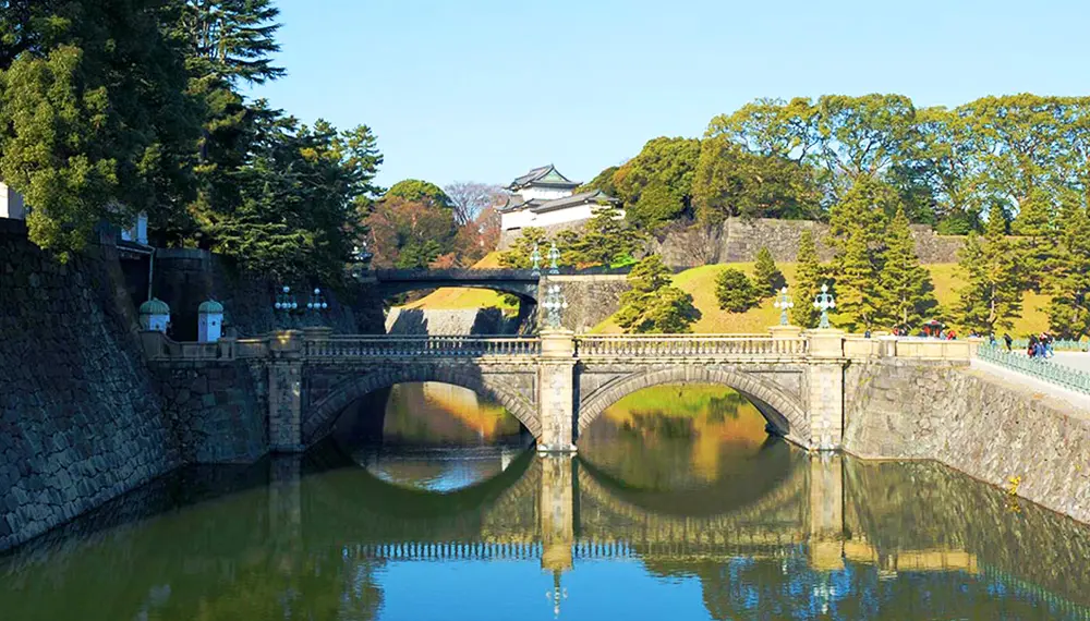 天皇家の住まいである皇居は、東京駅から徒歩10分の場所にあります。江戸時代(1603年-1867年)を統治した徳川家の居城跡地にあり、濠など当時の名残があちこちに見られます。東御苑は一般公開されており、美しい日本庭園を見ることができます。周辺は人気のランニングコースとしても有名です。