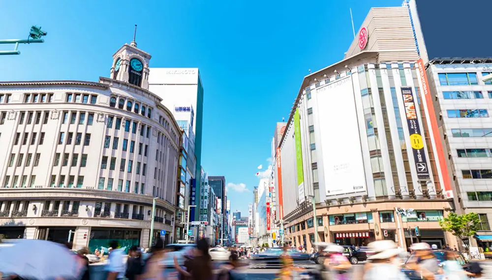 東京一の高級ショッピング&エンターテインメント街として知られる銀座。メインストリートである銀座通りにはデパートや高級ブランド店、宝飾店などが軒を連ねています。一流の味が楽しめる老舗の名店や高級レストランが揃うことでも有名です。